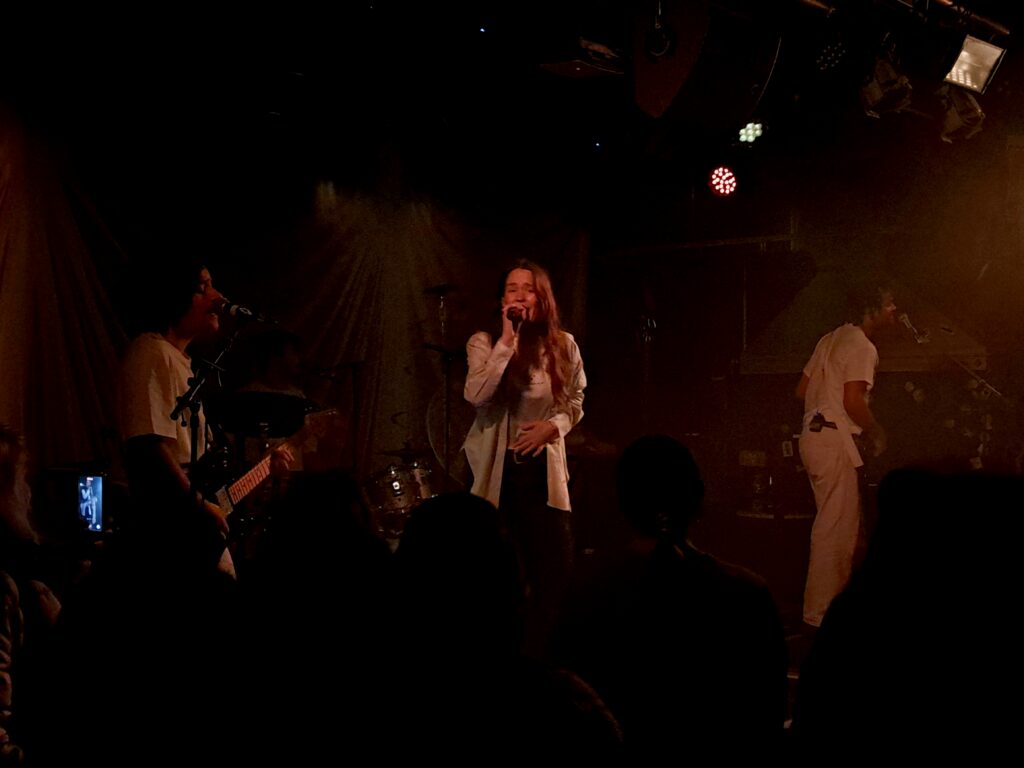 Dann ist es aber auch so weit: Nach einem kurzen Teaser-Video betritt Anna Of The North die kleine Bühne. Mit dabei hat sie eine Backing-Band aus Drummer, Gittarist/Keyborder sowie Bassist/Keyboarder. Direkt von Beginn an ist sie dabei voll in ihrem Element, singt, tanzt und versucht das Publikum zu animieren, was – zunächst verhalten, spätestens beim Lied Call Me jedoch ungeniert – mitmacht. Dabei offenbart sich wie bunt durchmischt die Zuhörer:innen sind: Alle Altersgruppen sind vertreten und im Gegensatz zu vielen anderen Konzerten, fällt es mir schwer, einen typischen Anna Of The North-Fan zu charakterisieren.